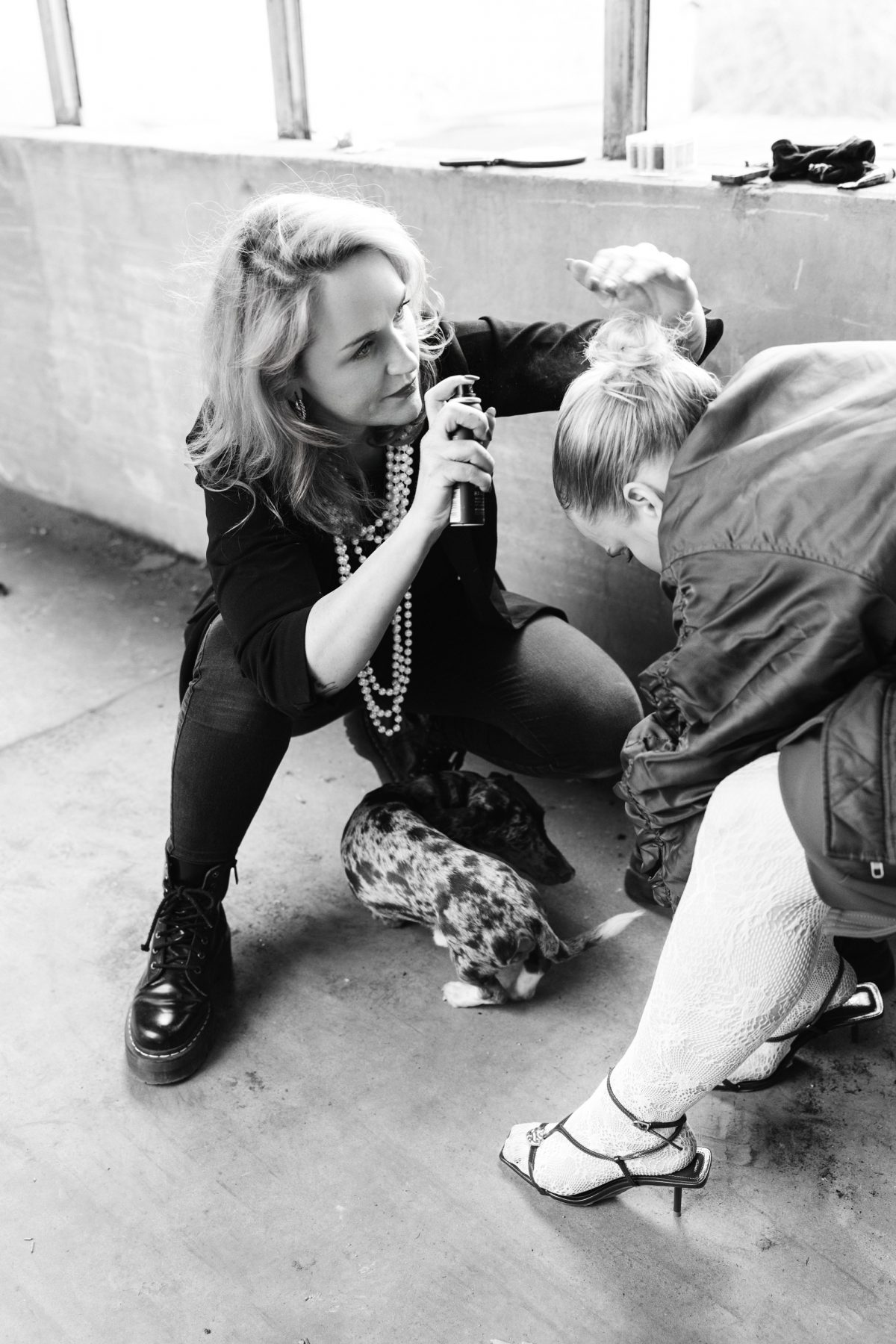 Meist begleitet mich mein treuer Styling-Buddy Floki von Hammersbald – mein Dackel und gleichzeitig Feelgood-Manager am Set. Er sorgt nicht nur für gute Laune, sondern lockert auch jede Stimmung mit seiner charmanten Art.